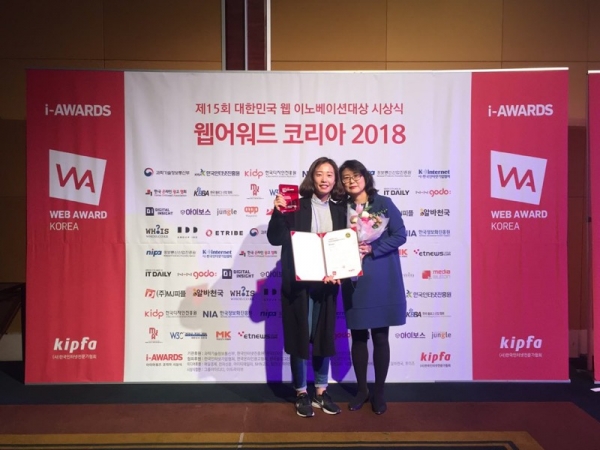 한국보건산업진흥원이 올 한 해 새롭게 구축되거나 리뉴얼된 국내 웹사이트들을 대상으로 가장 우수한 웹사이트를 선정해 시상하는 '2018년 웹어워드 코리아'에서 모바일 웹서비스 부문 공공서비스 분야 대상을 받았다.