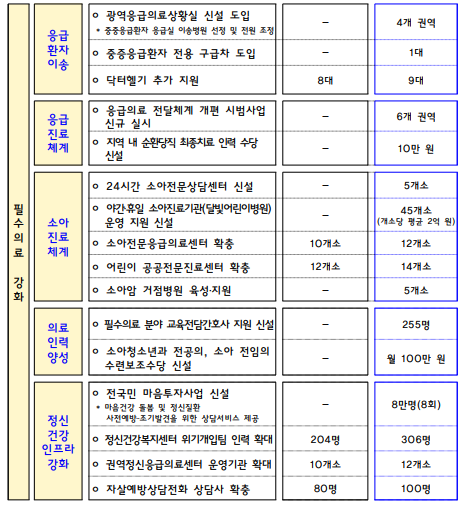 지방의료원 등 41개 공공병원의 경영 혁신을 위한 인센티브 한시 지원(A~C 등급별, 48억 원~12억 원 지급)에 514억 원을 투입하며, 지방의료원 시설장비 현대화를 위한 지원 강화에 10억 원을 사용할 예정이다.