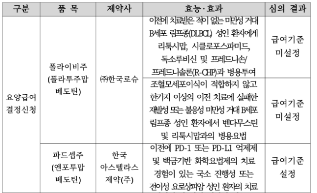 반면 폴라이비주는 급여 기준 미설정으로 다음 심의를 기약하게 됐다. 폴라이비주는 지난 2021년에도 암질심 문턱을 넘지 못한 바 있다.