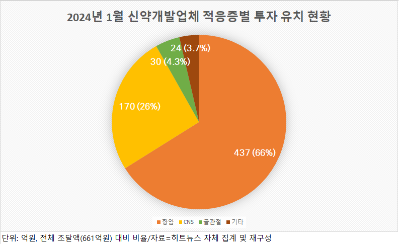 2024년 1월 국내 비상장 신약 개발 바이오 벤처가 약 660억원의 자금을 조달했다. 월별 기준 신약 연구개발(R&D)에 집중하는 비상장 기업이 600억원 이상을 조달한 건 2022년 12월 이후 무려 13개월 만이다.