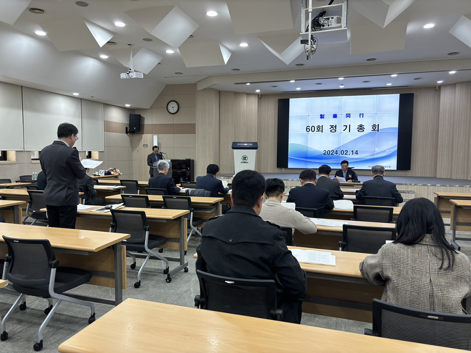 한국제약협동조합은 14일 오후 서울 제약회관에서 제60회 정기총회를 열고 올해 사업을 비롯한 안건 등을 논의했다. 조용준 조합 이사장은 먼저 "올 한해도 지금까지 여러 가지 정책 시행으로 제약업계의 경영 환경이 쉽지 않을 것으로 예상된다"고 운을 뗐다. 그러면서 "조합은 조합사들의 경쟁력 강화 및 생산성을 높이는 정책 마련을 위해 제도 개선과 정책 이슈에 적극 대응하겠다"고 덧붙였다.