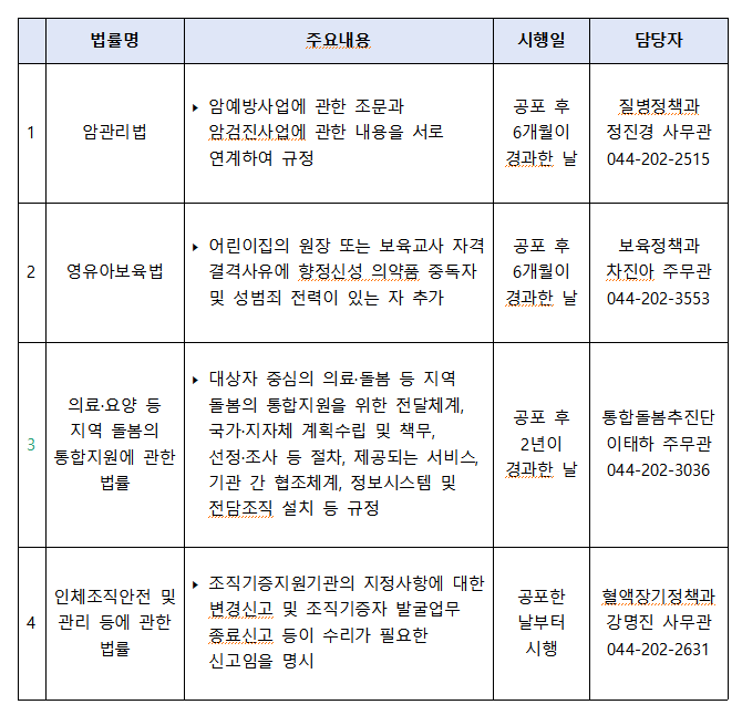 이외에 '암관리법'· '인체조직안전 및 관리 등에 관한 법률' 개정안이 함께 통과됐다. 이번에 통과된 법안들은 국무회의 의결을 거쳐 법안별 시행일에 맞춰 시행될 예정이다.