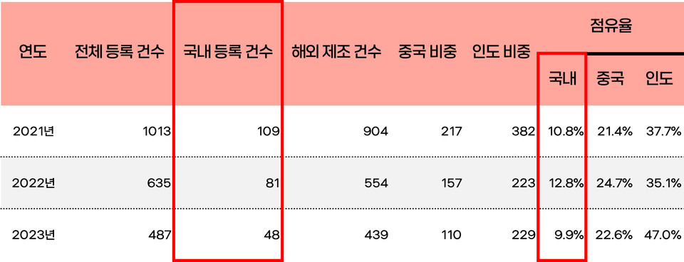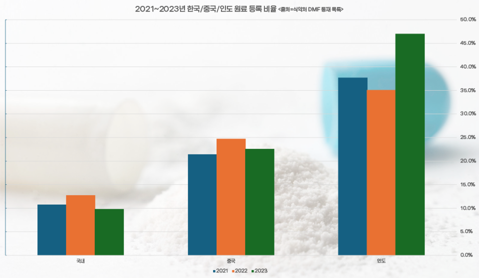 국산 DMF 등록 비중 급감… 등록 건수 47%는 '인도' 차지