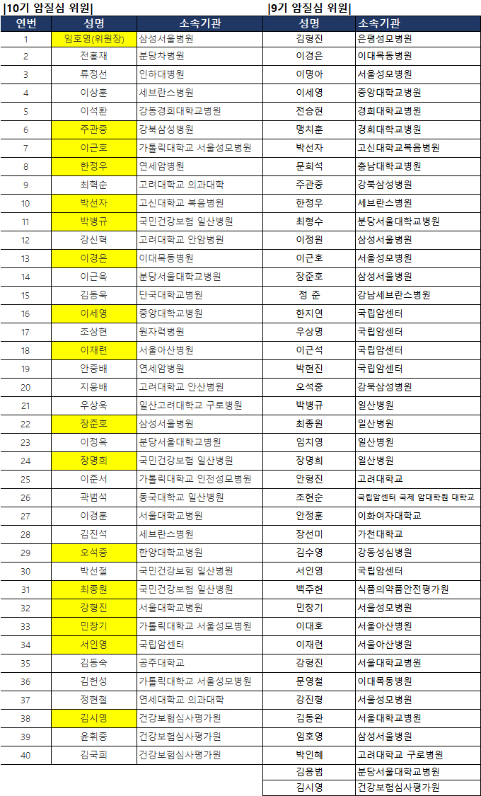 중증(암)질환심의위원회(이하 암질심) 10기 위원이 확정됐다. 위원장은 지난 9기와 마찬가지로 삼성서울병원 임호영 교수가 맡았다.