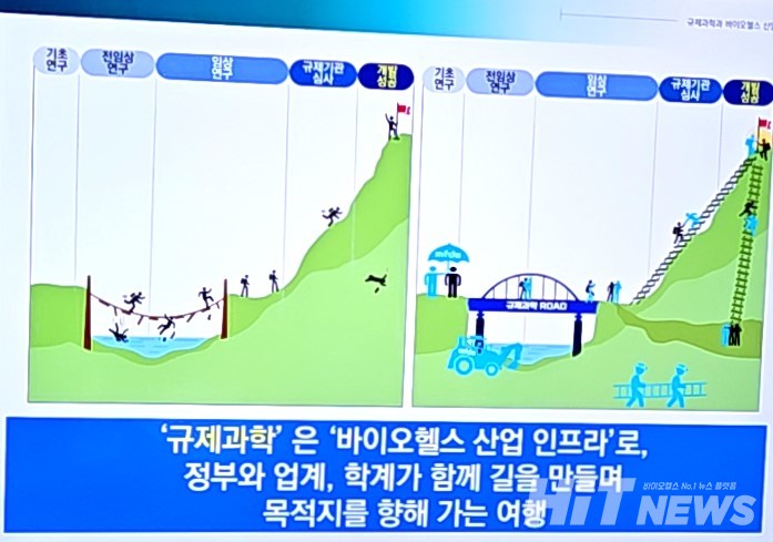김 교수는 규제과학을 '바이오헬스 산업 인프라로 정부∙기업∙학계가 함께 길을 만들며 목적지를 향해 하는 여행'이라고 묘사했다.
