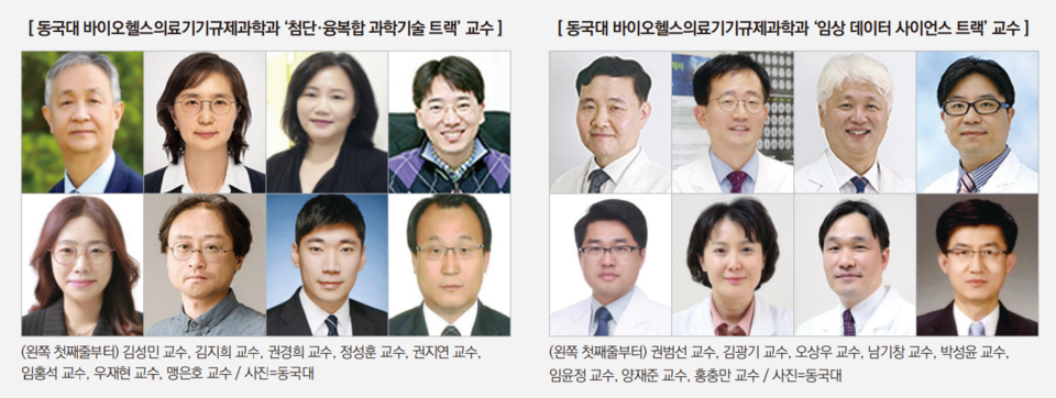 동국대 바이오헬스의료기기규제과학과의 비전은 '첨단·융복합 의료기기에 대한 규제과학 연구 및 교과 과정 운영을 통해 평가기술 개발 및 제품화 역량을 갖춘 석·박사급 규제과학 전문인력 양성'이다. 커리큘럼은 '첨단·융복합 과학기술 트랙'과 '임상 데이터 사이언스 트랙'으로 분류 돼 있으며, 의료기기 부문에서 규제과학을 선도하는 게 목표다.