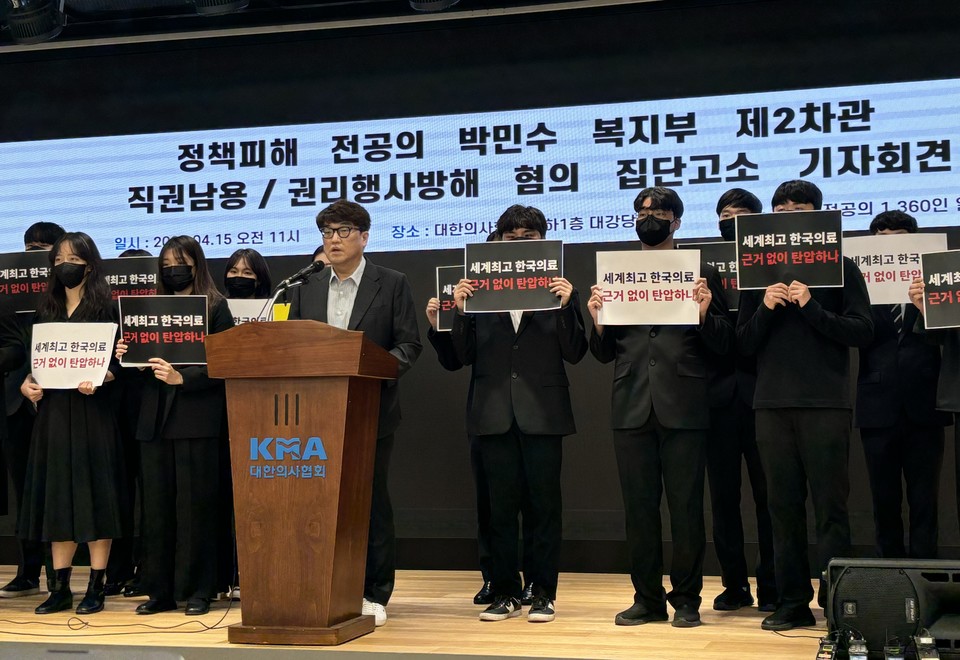 의대 증원 이슈를 두고 의료계와 정부의 갈등이 지속되는 가운데, 사직한 전공의 단체 약 1360명은 박민수 보건복지부 제2차관의 경질을 요구하며 고소에 나섰다. 혐의는 직권남용 및 권리행사 방해며, 대한전공의협의회의 대표성은 띠지않는 개별적인 행동이다.