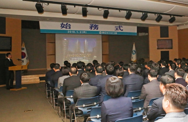 시무식은 지난해 창립 86주년을 맞이해 임직원들이 실시했던 봉사활동 영상 시청, 신년사 등으로 진행됐다.