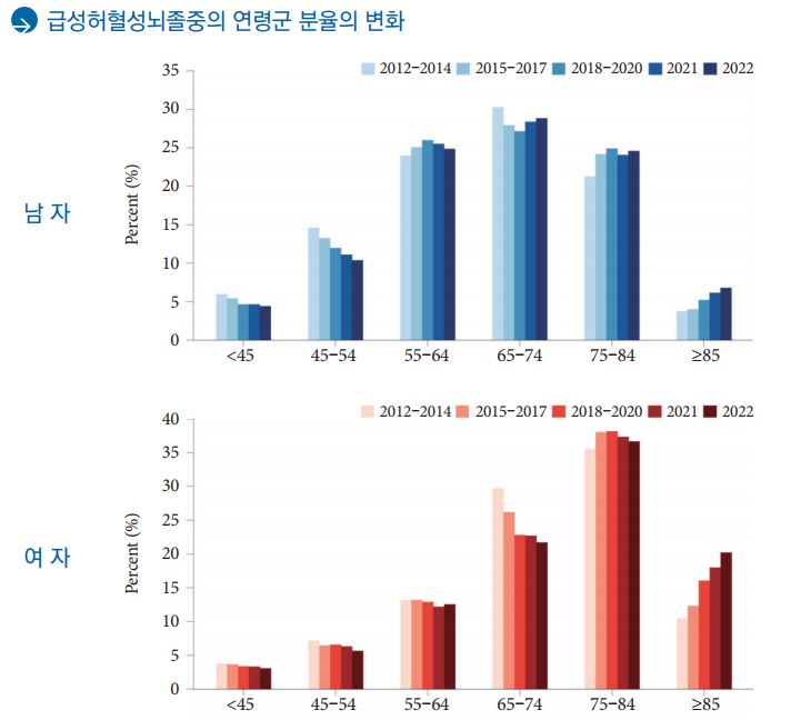 국내 85세 이상 뇌졸중 환자 비율이 2012~2014년에 비해 2022년에 2배 가량 증가한 것으로 나타났다.