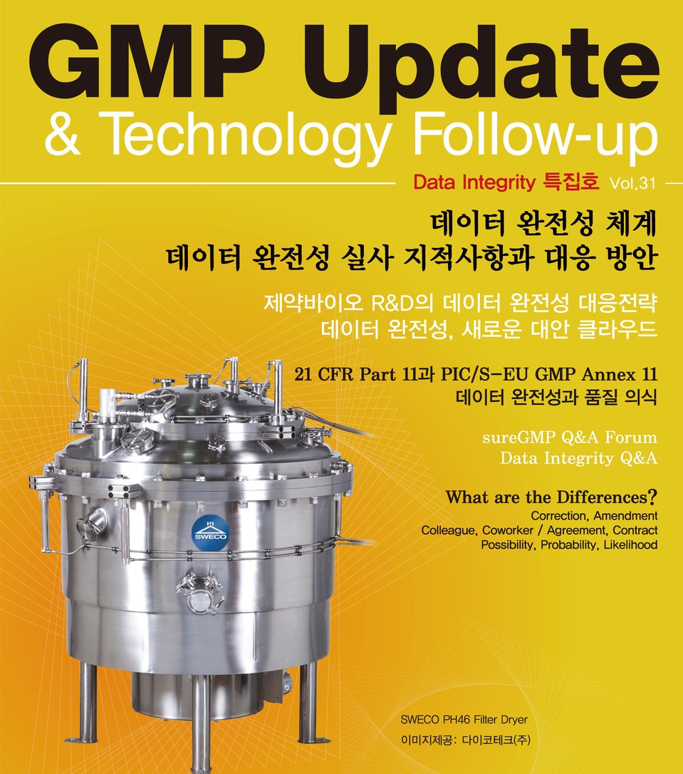 GMP 전문 포털인 'sureGMP(슈어지엠피, 대표 오종화)'는 최근 약업계 화두로 떠오른 데이터 완전성(Data IntegrityㆍDI) 내용을 다룬 'GMP Update & Technology Follow-up Vol.31' 특집호를 발간했다고 14일 밝혔다.