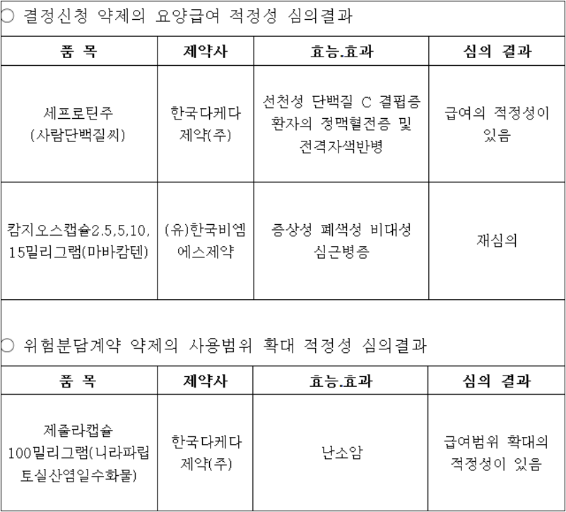 반면 또 다른 결정 신청 약제인 중증 선천성 단백질C 결핍증 치료제 '세프로틴주(성분 사람단백질씨)'는 약평위를 통과했다. 세프로틴주는 해당 질환 환자에게 승인된 최초의 약제로 2022년 8월 허가를 획득했다.