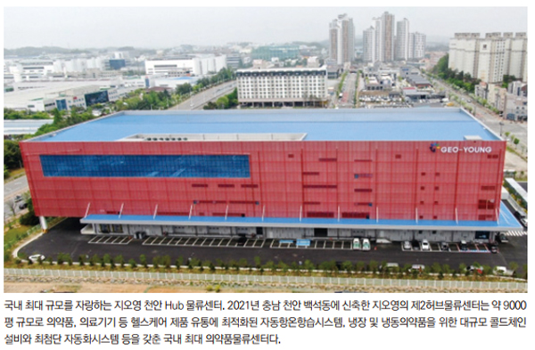 자동화 물류센터는 일일 2~3회 전국 배송체계를 구축하는데 핵심이 되었고, 지오영 급성장에 '신의 한수'가 됐다. 특히 의약분업 환경에서 제네릭 의약품의 공급확대로 취급 의약품 수와 양이 이전과 견줘 기하급수적으로 확대되는 상황에서, 최대의 의약품 취급이 가능하도록 선제적으로 완공된 지오영 인천물류센터는 그야말로, 국내 의약품 물류의 허브로 자리매김했다.