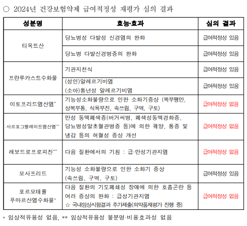 - 티옥트산 등 급여재평가 1차 결과 약평위 상정 예상
