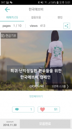 일상 속에서 도움을 주고 싶었다는 그. 자신의 ‘걸음’으로 환자에게 직접 도움을 줄 수 있다는 것을 접하니 더 뿌듯해 했다. 비록 '애브비워크'는 마쳤지만, 이후에도 다른 봉사활동에 참여하고 싶다는 소감도 함께 전했다.