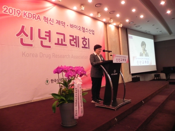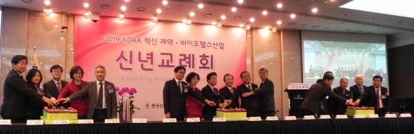 한국신약개발연구조합이 11일 오후 삼정호텔에서 연 '2019 KDRA 혁신 제약·바이오헬스산업 신년교례회'에는 제약·바이오산업계 주요 인사들과 정부 관계자들이 참석해 새해 희망을 다짐했다.