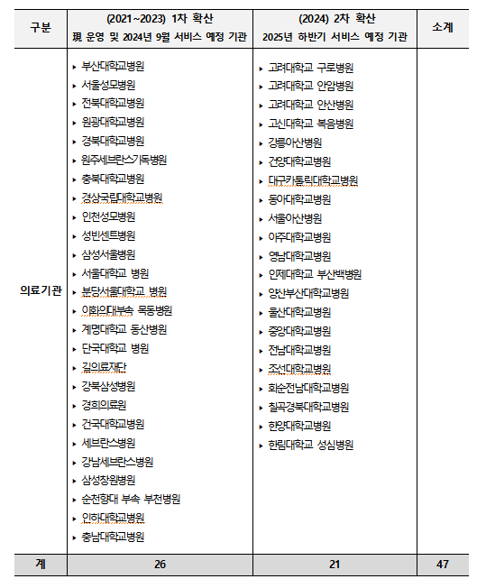 이에 따라 2차 확산사업이 완료되는 2025년 하반기부터는 건강정보 고속도로로 데이터를 제공하는 의료기관이 전체 상급종합병원 47개소를 포함한 총 1263개소로 확대될 것으로 예상된다.