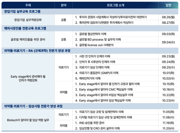 사업계획서 작성, 투자유치, 임상, 인허가 전략까지 역량 강화가 목표