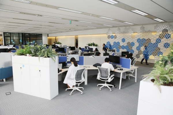 “유일하게 대표님 자리만 따로 지정돼 있어요. 대신 일반 회사처럼 대표실이 있는 형태는 아니죠. 책상만 따로 있어요. 스마트오피스가 도입될 당시 저희도 상무님이나 전무님 근처에 앉으면 어떡할까 등 걱정 아닌 걱정이 좀 있었죠. 그런데 직급의 문제가 아니라 각자 자신의 업무에만 집중하는 분위기 때문에 옆에 전무님이나 상무님이 있다고 해서 큰 불편함은 없어요”