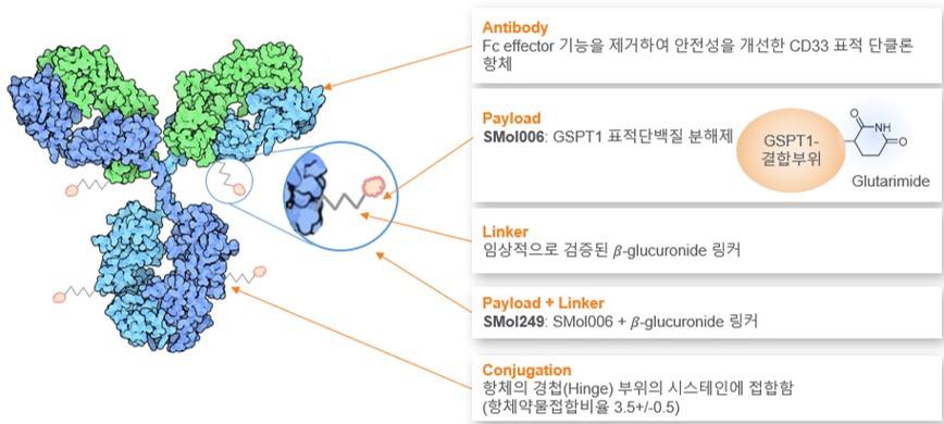 오름테라퓨틱의 DAC 신약인 ORM-6151은 GSPT1 분해제와 CD33 타깃 항체가 결합된 구조다. 여기서 CD33은 급성 골수성 백혈병(Acute Myeloid LeukemiaㆍAML) 암세포에서 특히 많이 나타나는 단백질인이다. 이런 CD33에만 찰싹 붙는 항체를 GSPT1 분해제에 결합시킴으로써, 정상세포를 피해 암세포만 죽일 수 있도록 디자인된 DAC가 ORM-6151이다.