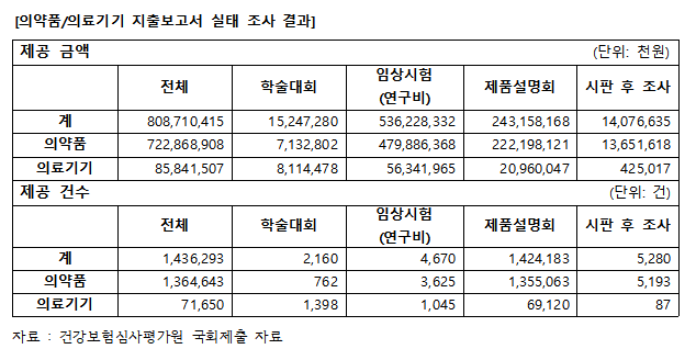 의약품은 136만 건에 7228억, 의료기기는 7만 건에 858억 제공