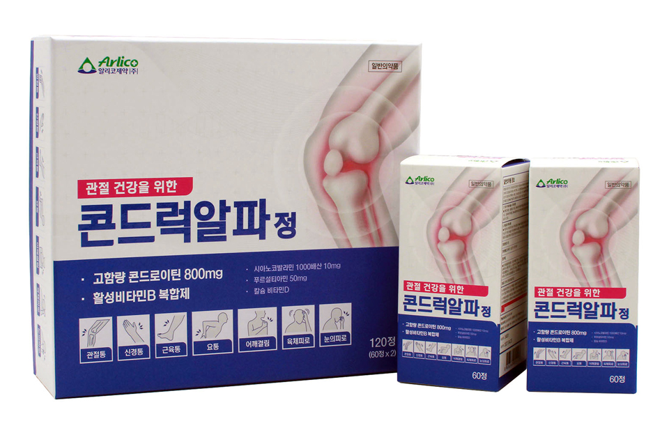 알리코제약㈜이 관절 건강에 필요한 콘드로이틴이 함유돼 있는 일반의약품 '콘드럭알파정'을 출시했다.