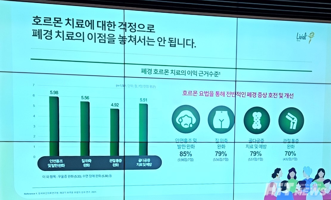 그는 "리비알은 대규모 임상시험 결과를 포함해 30년 이상의 처방 경험이 축적돼 유효성과 안전성 프로파일이 입증된 치료제다. 유방과 자궁내막에서 에스트로겐 작용을 억제하고, 뼈와 생식기 등에서는 에스트로겐 효과를 보이는 선택적 작용 기전을 가진다"며 "기존 호르몬 치료제보다 혈관 운동증상, 유방통과 질 출혈 빈도, 질 위축 증상, 성기능, 척추 및 비척추 골절 위험 등을 유의하게 개선시킨 것으로 확인됐다"고 소개했다.