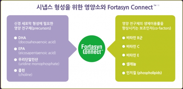 그러면서 이 관계자는 “아직까지 알츠하이머의 원인은 명확하게 밝혀져 있지 않기 때문에, 알츠하이머 증상을 완화시켜 줄 수 있는 방식으로 접근하고 있다. 수버네이드에 포함된 DHA, EPA, UMP, 콜린 등이 뇌에서 시냅스의 연결을 활성화 시키는 데 영향을 줘 알츠하이머 증상 개선에 효과를 줄 수 있다”고 설명했습니다.