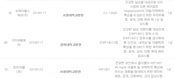 또 지난 23일 한미약품도 음식물이 'HIP1601 40mg'의 약동학 및 약력학적 특성에 미치는 영향을 탐색하는 임상 1상을 승인받았다.
