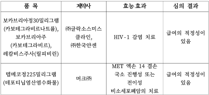 보카브리아+레캄비스 병용요법을 포함한 2개 치료제가 올해 마지막 약제급여평가위원회에서 급여 적정성이 있다고 판단됐다.