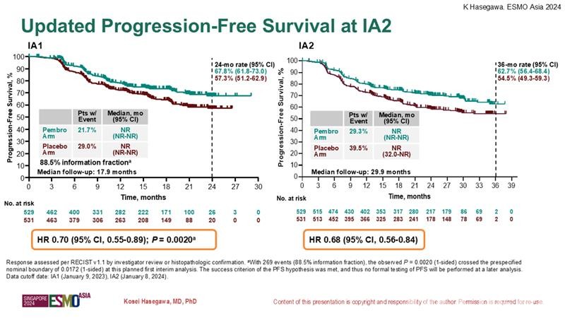 이로써 두 가지 1차 유효성평가변수를 만족한 KEYNOTE-A18 연구는 그 여세를 몰아 지난 6일(현지시간) 싱가포르에서 개최된 유럽종양학회 연례학술대회(ESMO 2024)에서 긍정적인 아시아 환자 하위분석한 연구 결과를 소개하는 데 이르렀다.