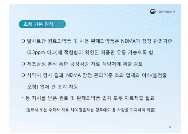이는 지난해 공식적인 기관에 제조공정 중 NDMA 안전성을 인정받아야만 제품 출하가 가능해진다고 밝힌 방침의 연장선상이다.