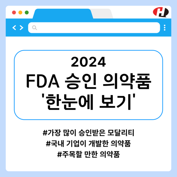 히트뉴스가 2024년 FDA 신약 승인 현황과 주요 제품들을 카드뉴스로 담아봤다.