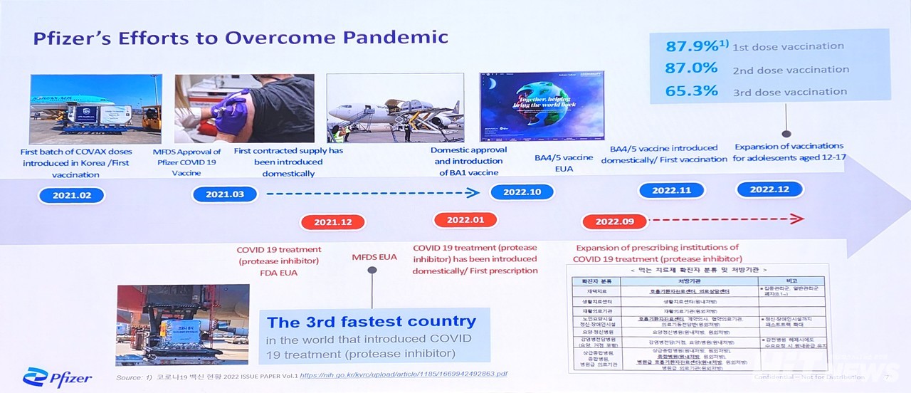 개발 스토리 외 화이자는 전세계에서 3번째로 치료제를 한국에 도입하는 등 국내 정부와의 소통 노력을 이어갔다.