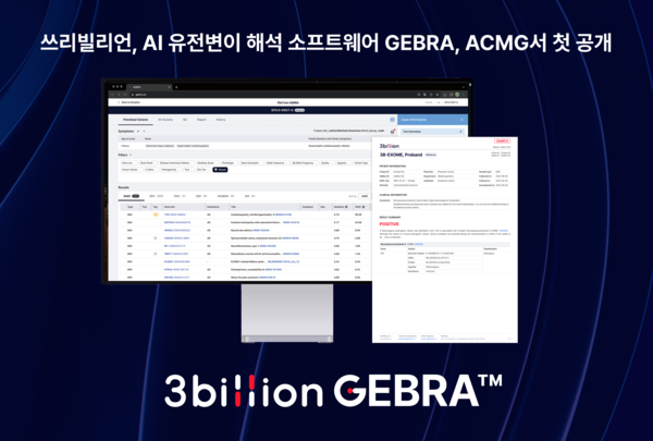 이해인 쓰리빌리언 총괄 이사는 "그동안 쓰리빌리언이 축적해온 데이터를 기반으로 유전진단에 최적화된 GEBRA를 출시하게 됐다"며 "ACMG에서 전 세계 의학유전학 전문가들에게 GEBRA를 널리 알려 더욱 많은 희귀질환 환자들이 빠르고 정확하게 진단받을 수 있도록 노력하겠다"고 전했다.