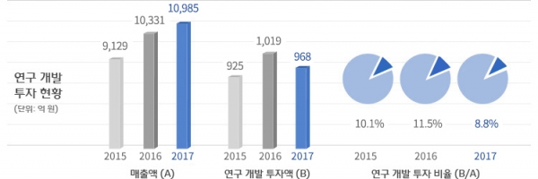 외형이 커지는 동안 수익성 변동 폭이 컸던 이유는 연구개발 비용이 지난해 같은 기간보다 12.3% 증가했고, 지속적인 글로벌 진출을 위한 투자에 따른 고정비 증가 등으로 매출 원가가 상승했기 때문으로 풀이된다.