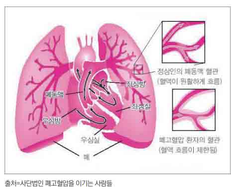 행돼 폐가 점차 딱딱하게 굳어가는 질환을 간질성폐질환(interstitial lung disease, ILD)이라고 하며, 폐고혈압을 동반하게 된다.