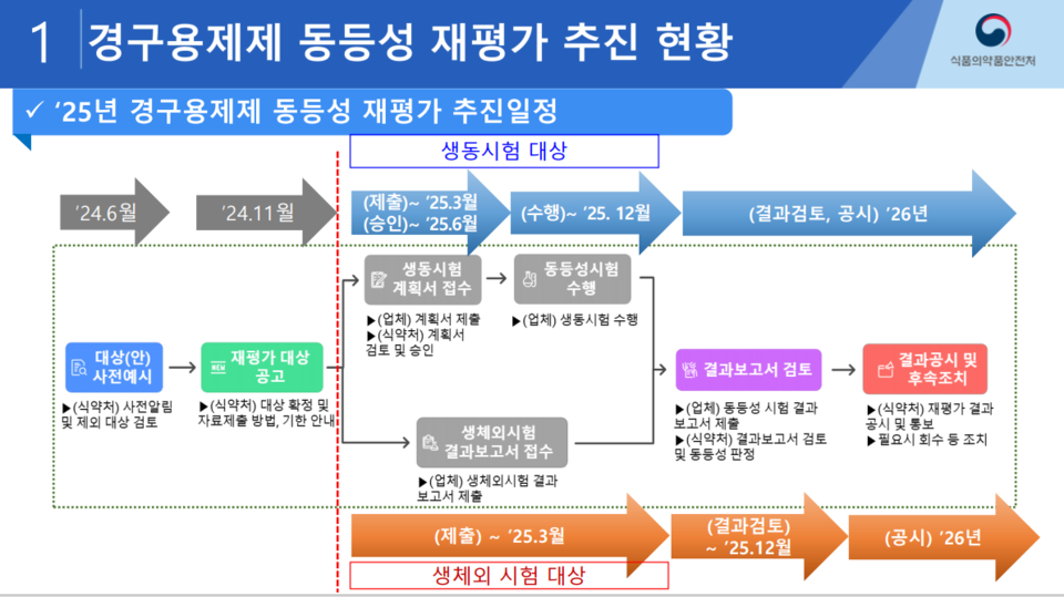 지난달 26일 식품의약품안전처가 '2025년 의약품 시판 후 안전관리 정책설명회'에서 밝힌 재평가 타임라인과 유의사항을 정리했다.