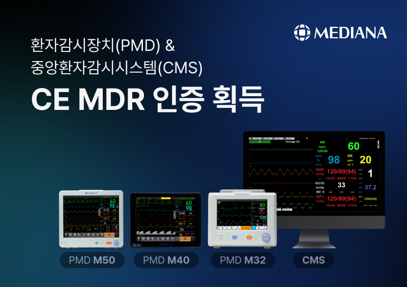 메디아나(대표 곽민철)는 자사 환자감시장치(PMD) 전 모델과 중앙환자감시시스템(CMS)이 '유럽 CE MDR' 인증을 획득했다고 14일 밝혔다.