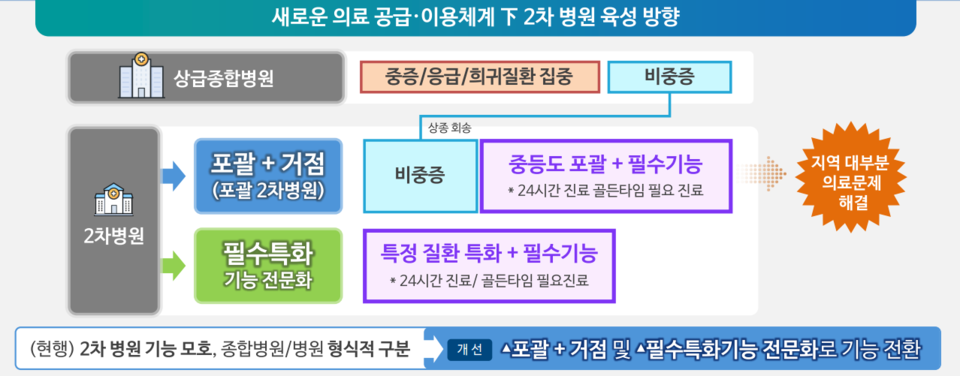이를 해결하기 위한 복안으로 제시된 것이 바로 ‘포괄 2차 종합병원’이다. 단순히 병상 규모나 환자 수가 많은 병원이 아닌, 일정 수준 이상의 진료 과목과 인프라, 지역사회와의 연계 능력을 갖춘 병원을 지정하여 체계적으로 육성한다는 전략이다. 특히 내과, 외과, 산부인과, 소아청소년과 등 필수 진료과를 포함해 15개 이상의 진료과를 운영하고, 지역 의료기관과의 연계 협력 실적을 평가 지표로 반영할 방침이다.