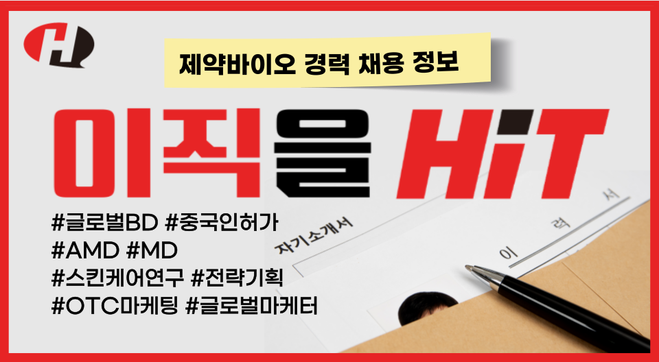 - [경력채용] 코오롱생명과학, 팜비오, 한독, 광동제약, 유영제약