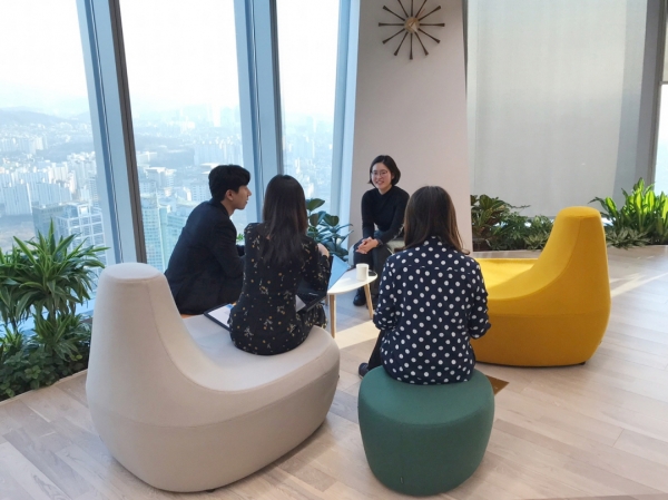 “저희 팀은 마케팅, 세일즈 팀과 소통할 일이 많아요. 지정좌석이 아니니까 가까운 공간에 임의로 앉을 수도 있고, 멀티태스킹 룸이나 중간중간 회의 책상이 많아 소통하는데 더 큰 도움이 되고 있어요.”