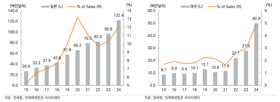 업계는 외국인 환자의 피부과 지출액은 지난해 4분기 기준 최대 2132억원이며, 이는 내수 시장 활성화에 국한되지 않고 수출 증가로 이어질 수 있는 유의미한 성과라고 주장했다. 일본인 환자를 통해 일본향 에너지 기반 미용기기 수출액이 지난 5년간 연평균 16% 성장했고, 태국인 환자가 증가하면서 태국향 수출액도 연평균 성장률 31%를 달성했다는 주장이다.