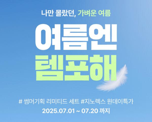 이번 행사 기간 동안 제품을 구매한 모든 고객에게는 '템포 내추럴순면 입는오버나이트'(1P)가 증정되며, 템포와 지노렉스 합산 구매금액이 10만원 이상인 고객 중 추첨을 통해 5명에게 '아워글라스'립밤이 사은품으로 제공한다.