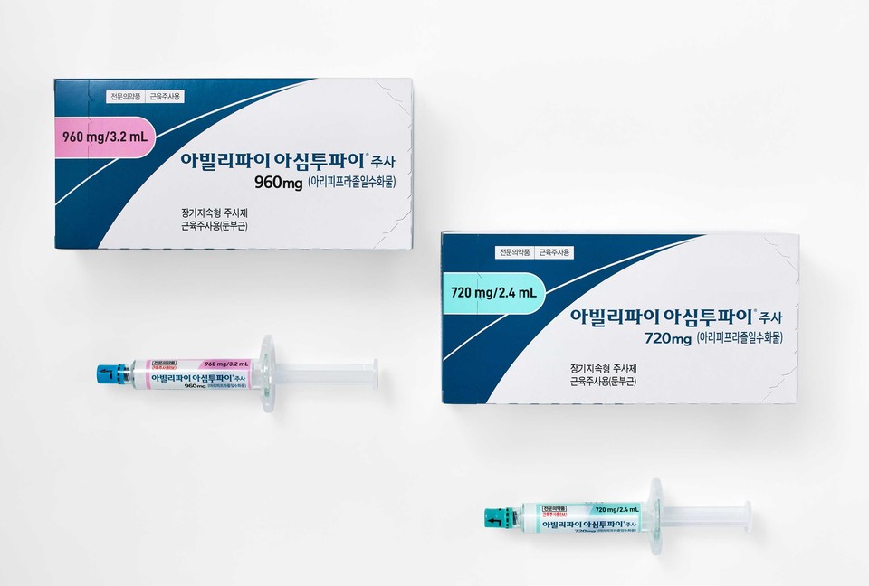 조현병 및 양극성 장애 1형 환자 266이 참여한 임상연구에서 아빌리파이아심투파이 960㎎ 투여군은 기존 1개월 간격으로 투여되는 '아빌리파이메인테나' 투여군과 상응하는 수준의 안전성과 유효성을 입증했다.
