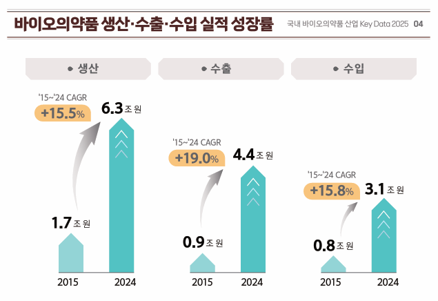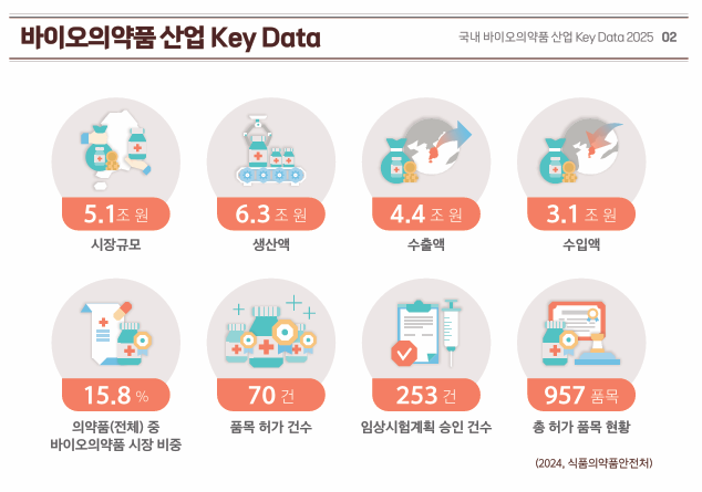한편 이번 ‘국내 바이오의약품 산업 KEY DATA 2025‘는 식품의약품안전처가 2025년에 발표한 2024년 연간 통계 자료를 기초로 작성됐다.