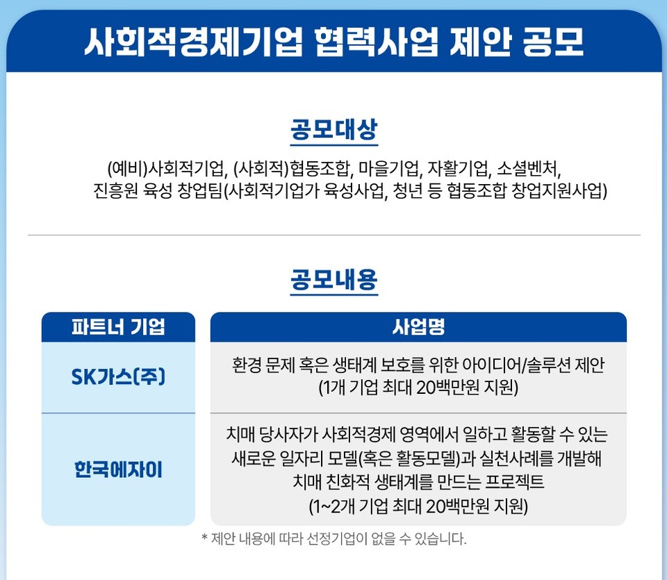 회사 측에 따르면 이번 사업 공모는 사회적기업·협동조합·마을기업·자활기업·소셜벤처 등 사회적 경제기업을 대상으로 진행된다. 신청기한은 내달 5일까지고, 결과는 11월 중 발표된다. 선정된 기업에는 최대 2000만원의 사업비가 제공된다.