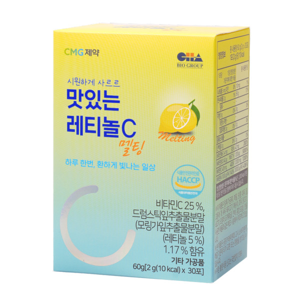 CMG제약(대표 이주형)은 식물성 레티놀이 함유된 '맛있는 레티놀C 멜팅'을 선보인다고고 20일 밝혔다.