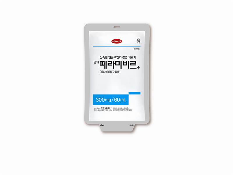 회사에 따르면 한미페라미비르주는 5일간 경구 복용해야 하는 오셀타미비르 성분의 치료제와 달리 성인과 2세 이상 소아의 A형·B형 독감을 단 한 번의 점적 주사로 치료할 수 있는 제품이다. 연하곤란 환자나 빠른 치료를 원하는 환자들에게 특히 유용할 것으로 기대된다.