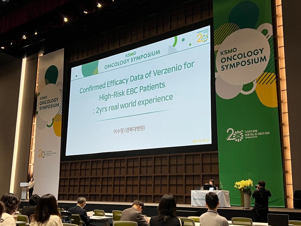 이번 행사에서는 이수정 칠곡경북대학교병원 혈액종양내과 교수가 '재발 고위험 조기 유방암 환자 대상 버제니오의 효능 데이터: 2년 간의 실제 임상 경험'을 주제로 최신 임상 데이터와 임상 경험을 발표했다.
