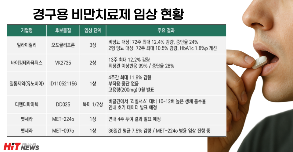 비만치료제의 다음 키워드는 '경구제'다. 알약 하나로 체중을 줄일 수 있는 신약이 새로운 승부처로 떠올랐다. 글로벌 기업들이 잇따라 임상 데이터를 내놓고, 국내 제약사들도 발빠르게 성과를 내며 추격에 나서고 있다. '먹는 비만약'의 승기를 누가 잡을지 시장의 관심이 쏠리고 있다.